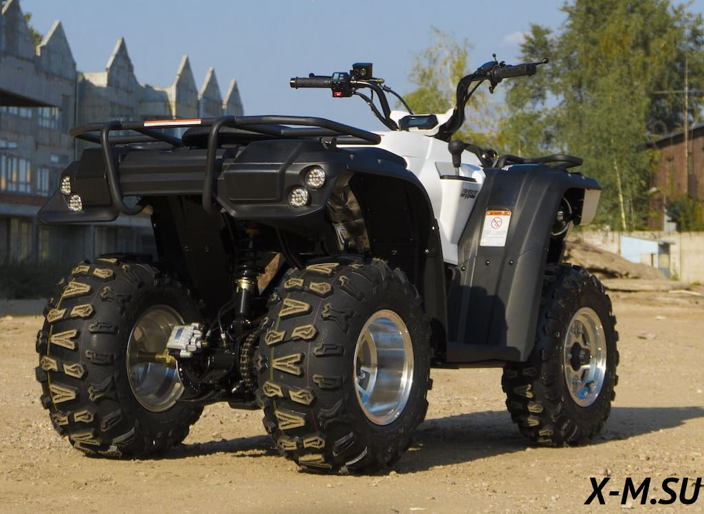 Шины: передние / задние - 21 х 7 - 10 / 22 х 10 - 10. Внедорожная резина на литых дисках