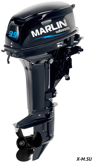 MP 9.9 AMHS: Лодочный мотор Marlin Outboards, двухтактный, 9,9 лошадиных сил, ручной запуск двигателя, румпельное управление, короткая нога (дейдвуд).